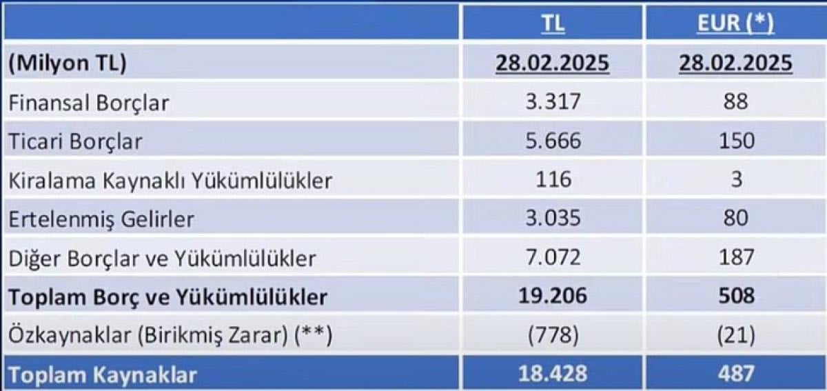 Fenerbahçe'nin konsolide borcunun 28 Şubat 2025 itibarıyla borç ve yükümlülükleri toplamı 19 milyar 206 milyon TL (508 milyon euro) olduğu açıklandı.