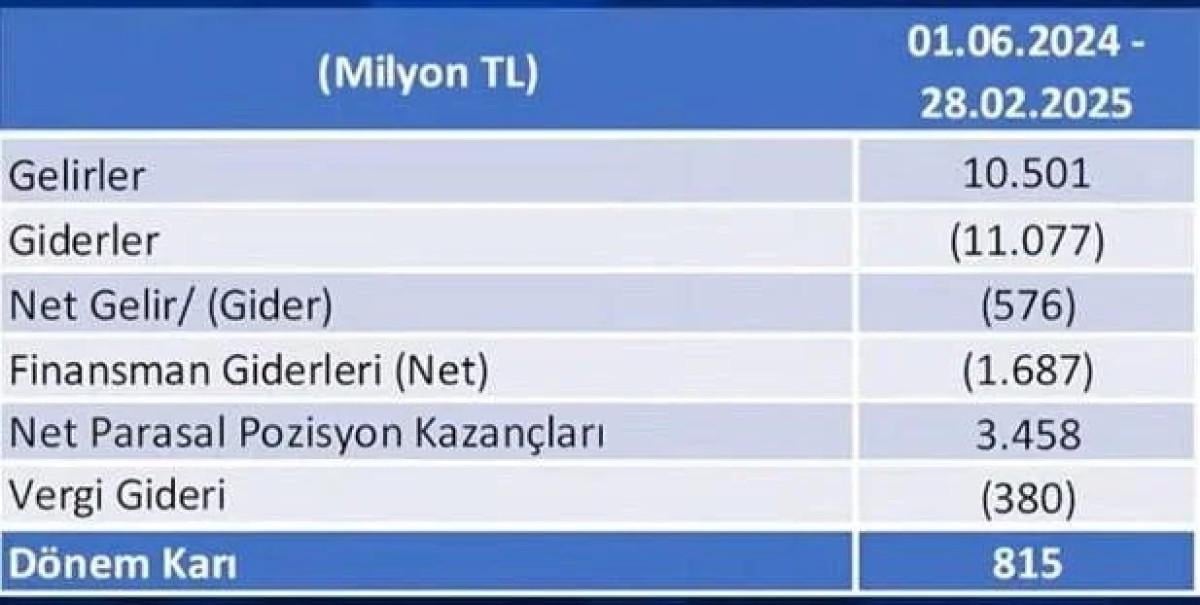Fenerbahçe'nin 1 Haziran 2024 - 28 Şubat 2025 tarihi itibarıyla dönem karının 815 milyon TL olduğu açıklandı.