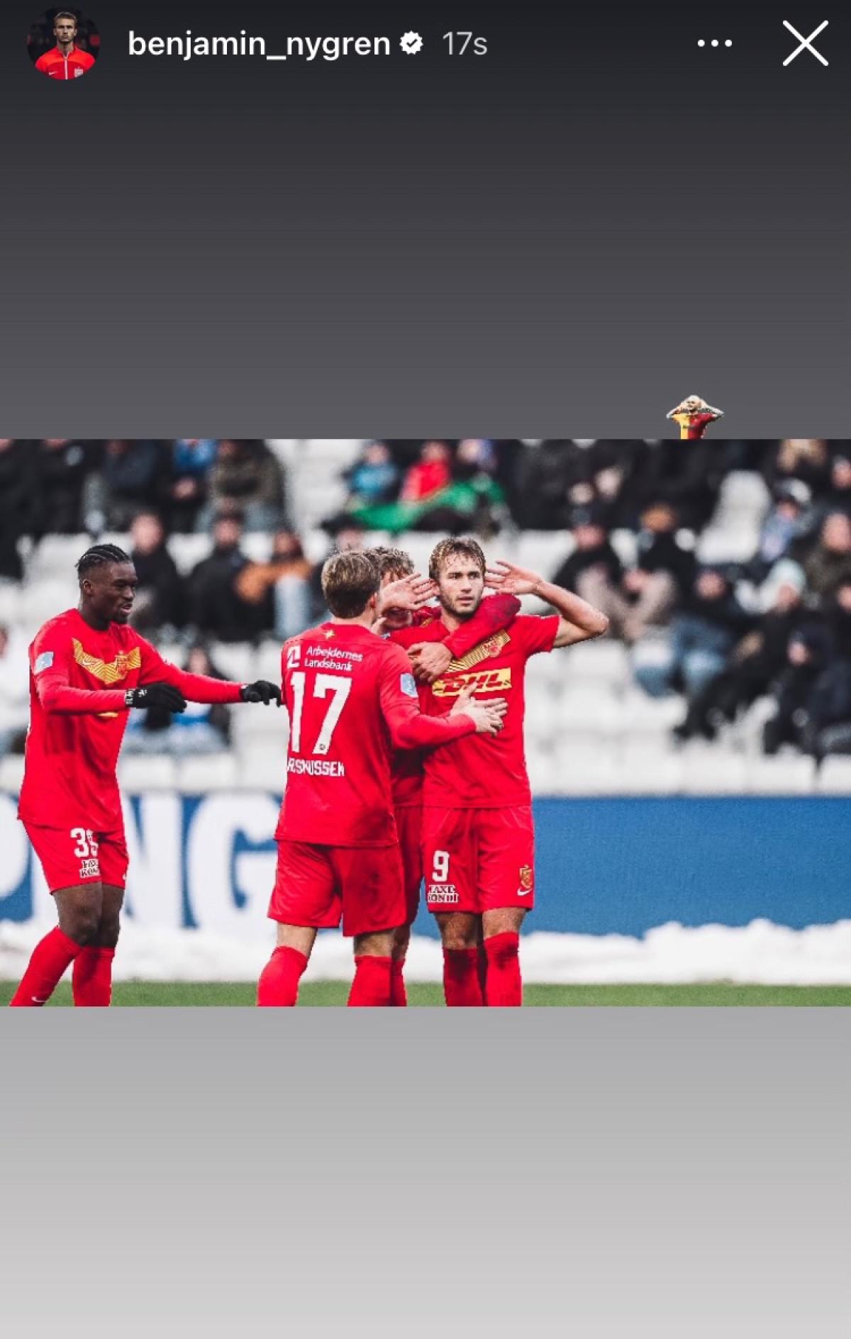 Nordsjaelland'ın 22 yaşındaki futbolcusu Benjamin Nygren, attığı golün ardından yaşadığı sevinci sosyal medya hesabından yayınlarken 'Icardi GIF'i ile bir paylaşım yaptı.