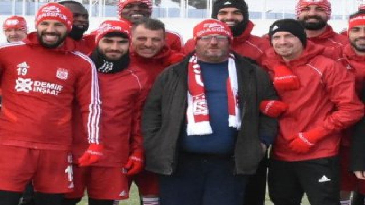 Beşiktaş galibiyetini kutlarken amatör videoya yansıyan yöresel şiveyle 'Zabaha kadar buradayız' sözleri ile sosyal medyanın gündemine düşen Demir Grup Sivasspor taraftarı Ahmet Yaşin, antrenmana gelerek futbolcularla buluştu.