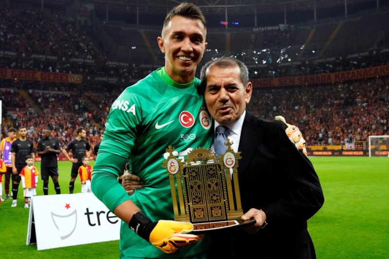 Seremoni öncesinde de Galatasaray Başkanı Dursun Özbek, Fernando Muslera’ya plaket takdim etti.