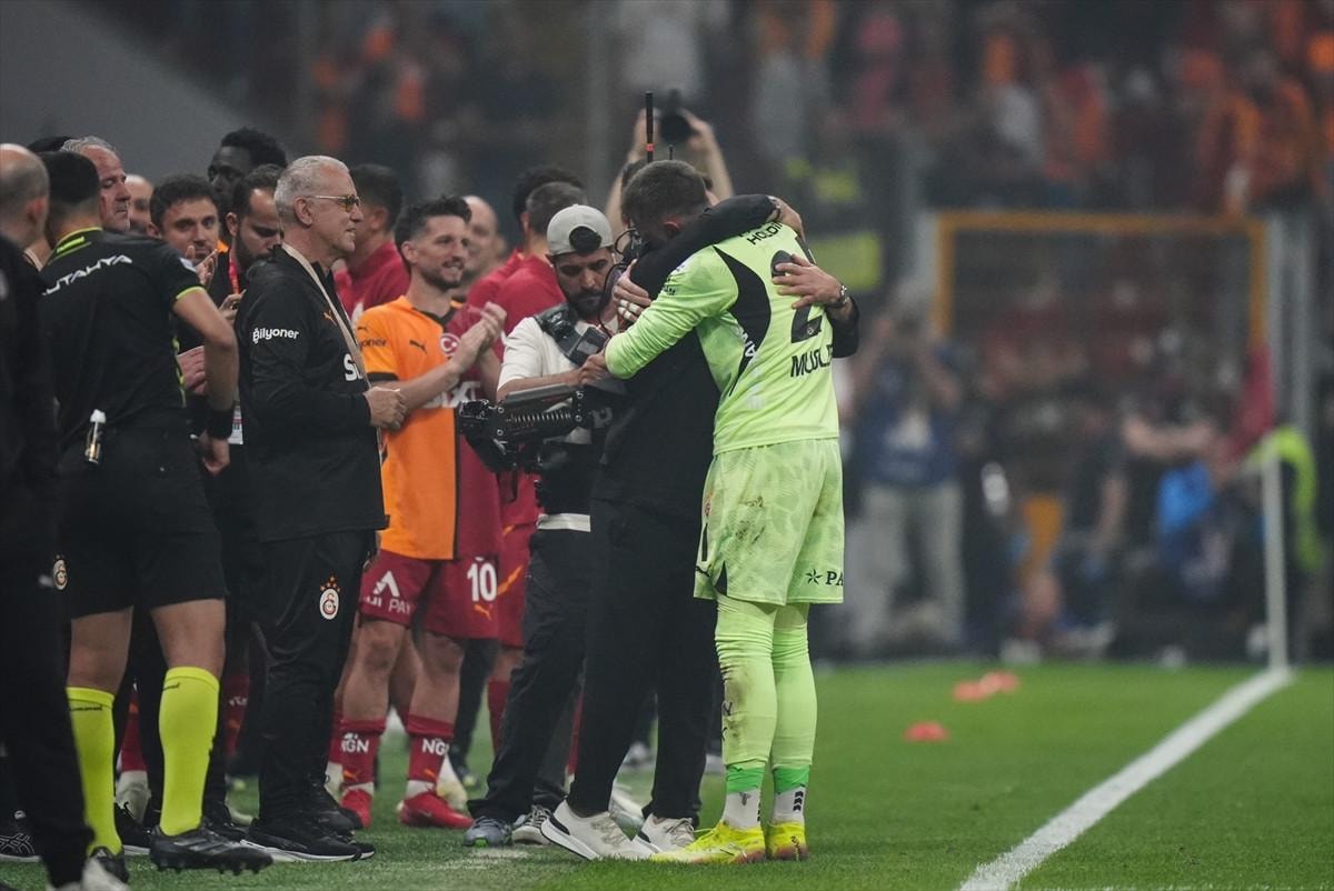Muslera'yı takım arkadaşları omuzlarına alarak saha kenarına getirdi.