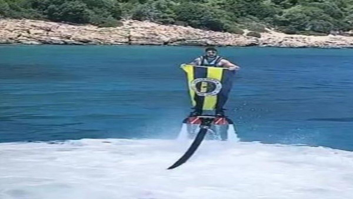 Tatilde flyboard yapan 25 yaşındaki futbolcu, denizin derinliklerinden sarı-lacivertli bayrağı açarak yükseldi. Tufan, o anları sosyal medya hesabından "Her zaman her yerde!" mesajıyla paylaştı. Bu görüntüler Fenerbahçeli taraftarlardan büyük beğeni aldı.