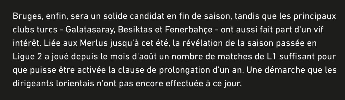 21 yaşındaki futbolcu, Ligue 1'de sözleşmesini uzatmasını sağlayacak kadar maça çıktı ancak Lorient, henüz yeni sözleşme konusunda bir adım atmadı.