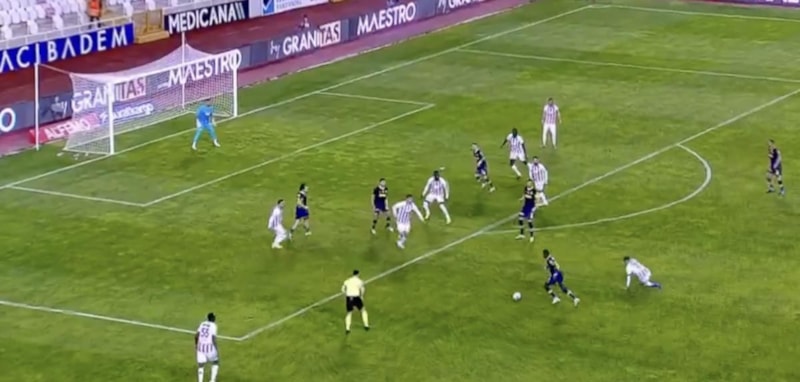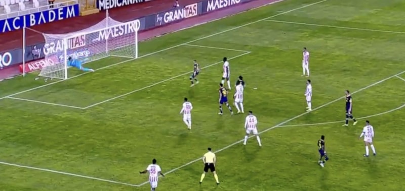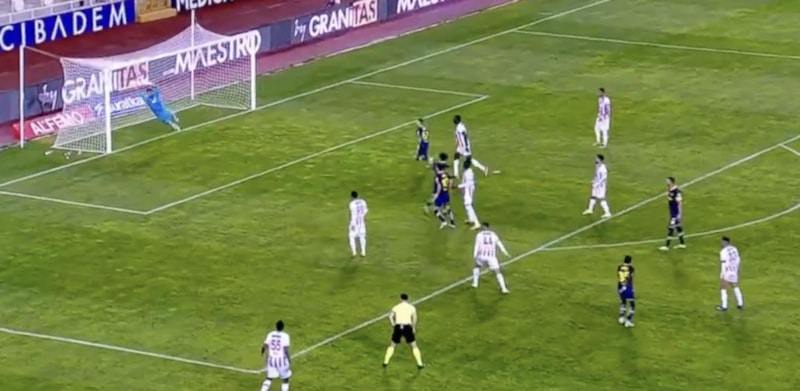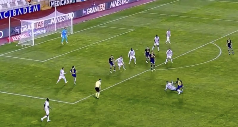 Dakikalar 45+2'yi gösterdiğinde Ferdi Kadıoğlu'nun pasında Fred sol çaprazda caza sahasının önünde rakibini geçerek kaleye vurdu.