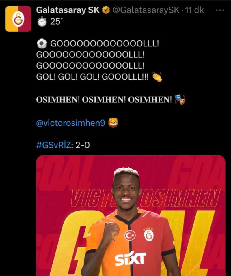 Golün Abdülkerim'e veya Osimhen'e mi ait olduğu tartışılırken Galatasaray'ın resmi hesabı çarpıcı bir paylaşıma imza attı.