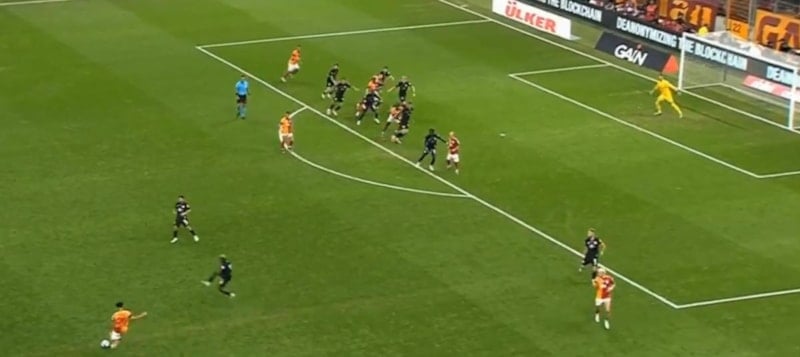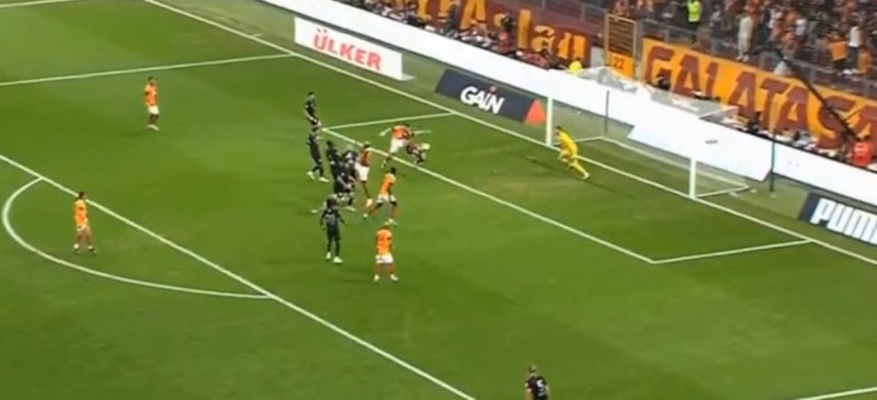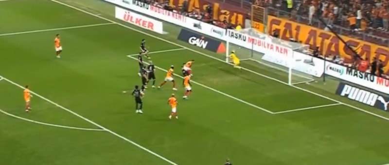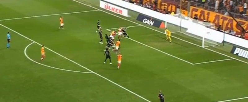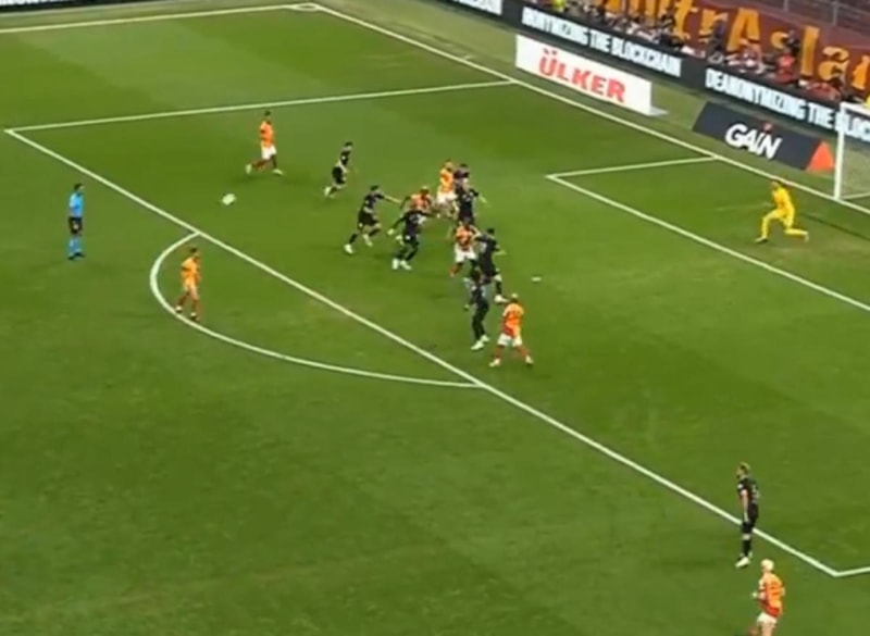 Paslaşılarak kullanılan serbest vuruşun ardından Gabriel Sara sağ iç kulvarsan sol ayağıyla ortayı yaptı, ceza sahası içi hafif sol çaprazında topa yükselen Victor Osimhen'in kafa vuruşunun ardından Abdülkerim Bardakcı'nın sol ayağıyla dokunduğu top yakın köşeden ağlara gitti.