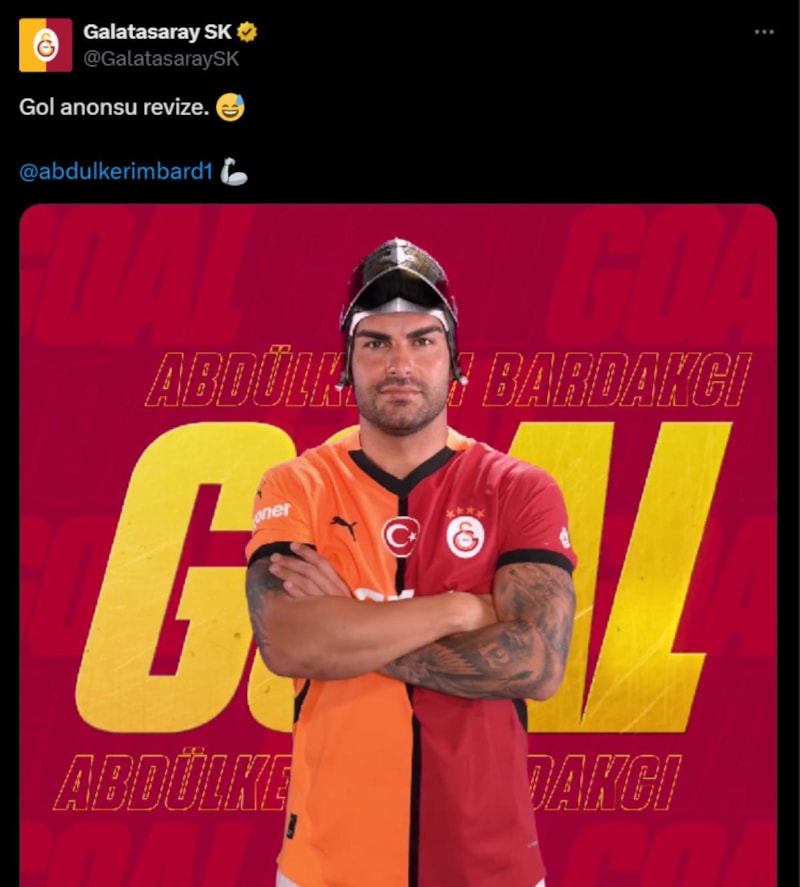 Sarı-kırmızılılar, "Gol anonsu revize" notunu paylaşarak golün Abdülkerim'e ait olduğunu ifade etti.