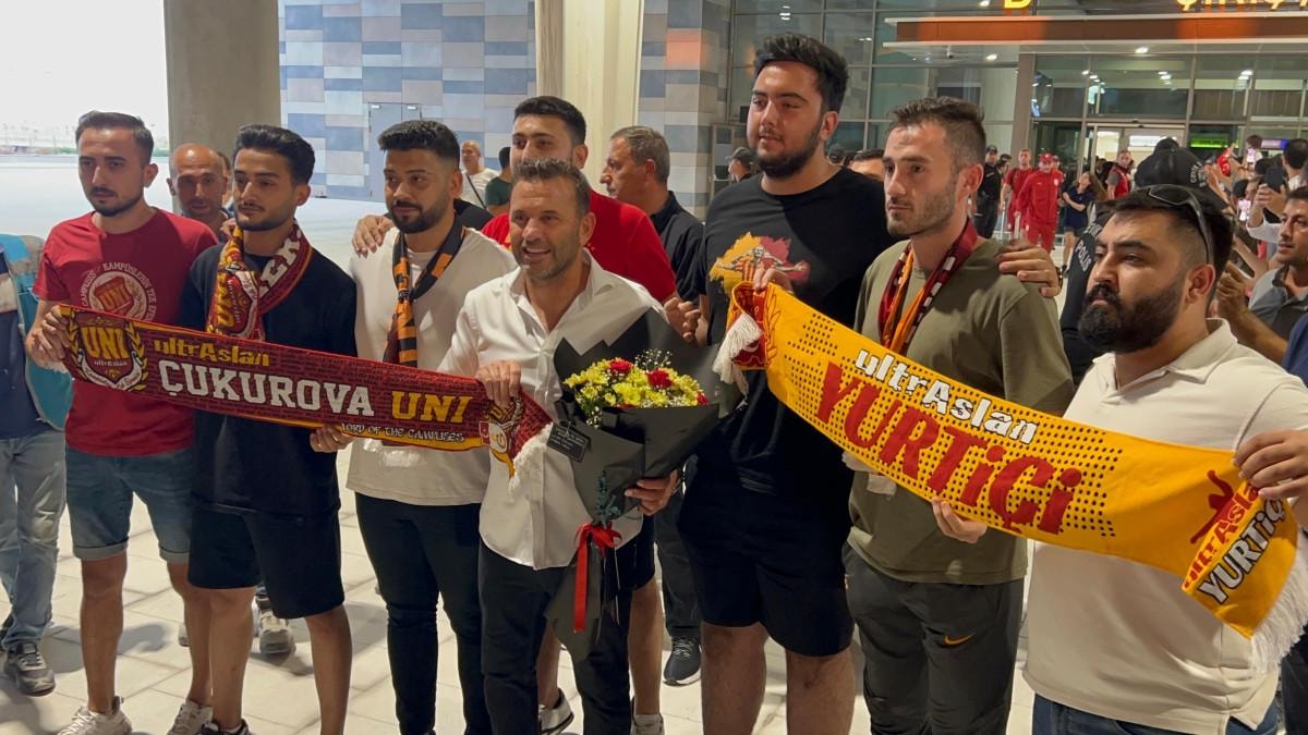 Uçakla İstanbul'dan Çukurova Uluslararası Havalimanı'na inen sarı-kırmızı kafileyi taraftarlar karşıladı.