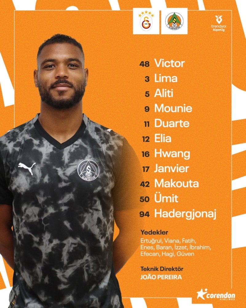 27' Alanyaspor'da Lima önceki pozisyonda topsuz alanda yaptığı faul için sarı kart gördü.