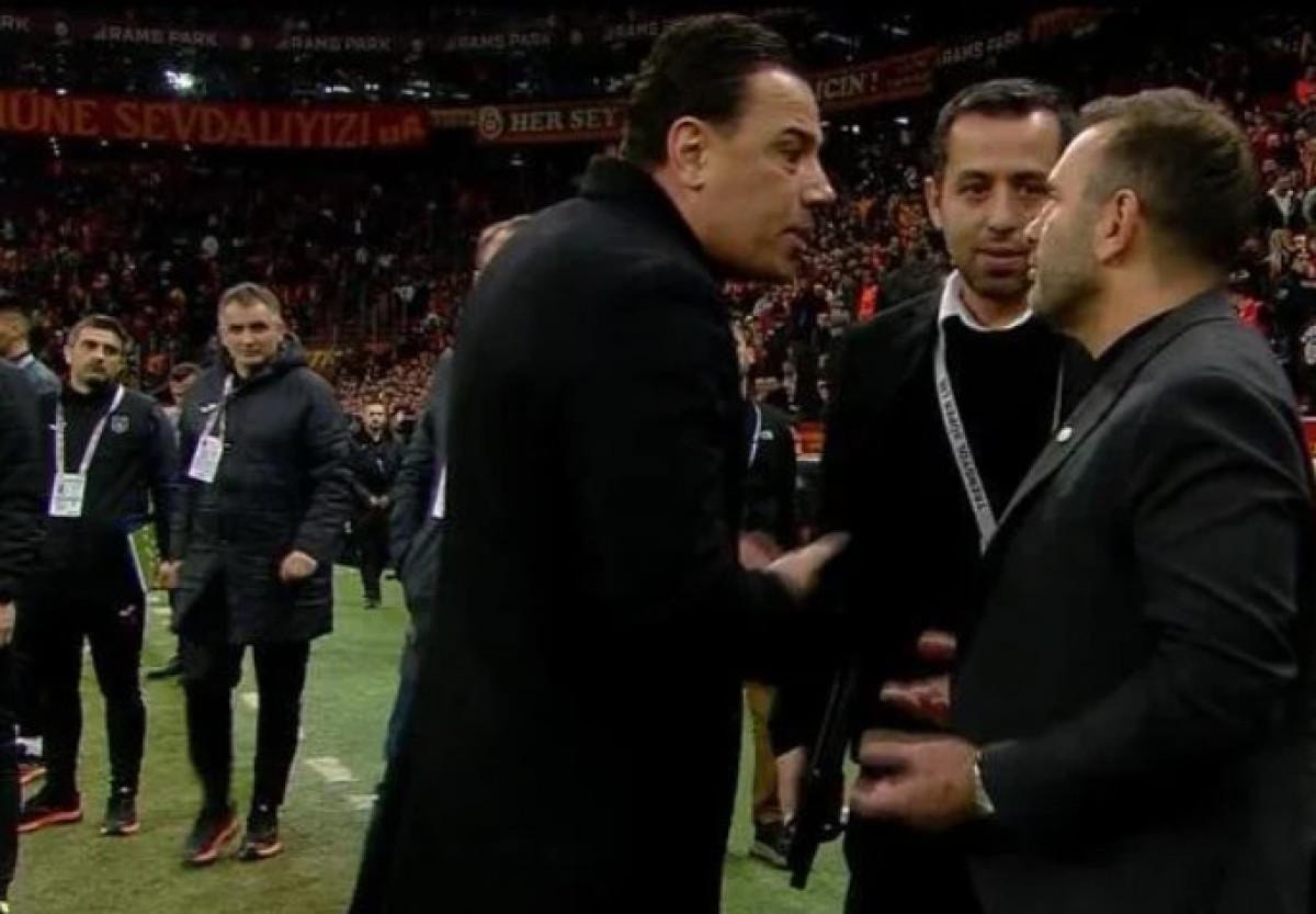 Galatasaray Teknik Direktörü Okan Buruk ise, "Olur mu öyle şey ya, kusura bakma" yanıtını verdi. Kısa süreli diyaloğun ardından ikili sarılarak tartışmayı tatlıya bağladı.