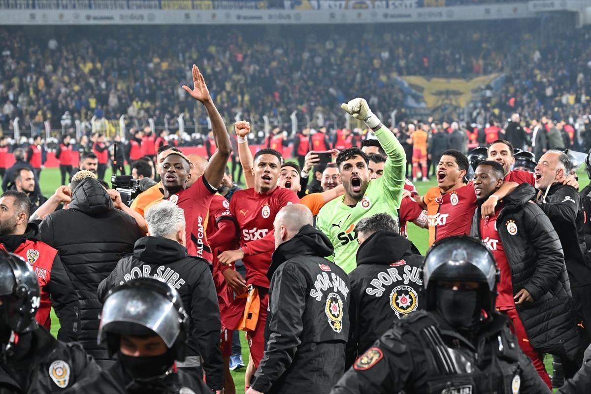 Futbolcular ve teknik ekip, daha sonra deplasman tribününe giderek derbi galibiyetini marşlar söyleyerek birlikte kutladı.