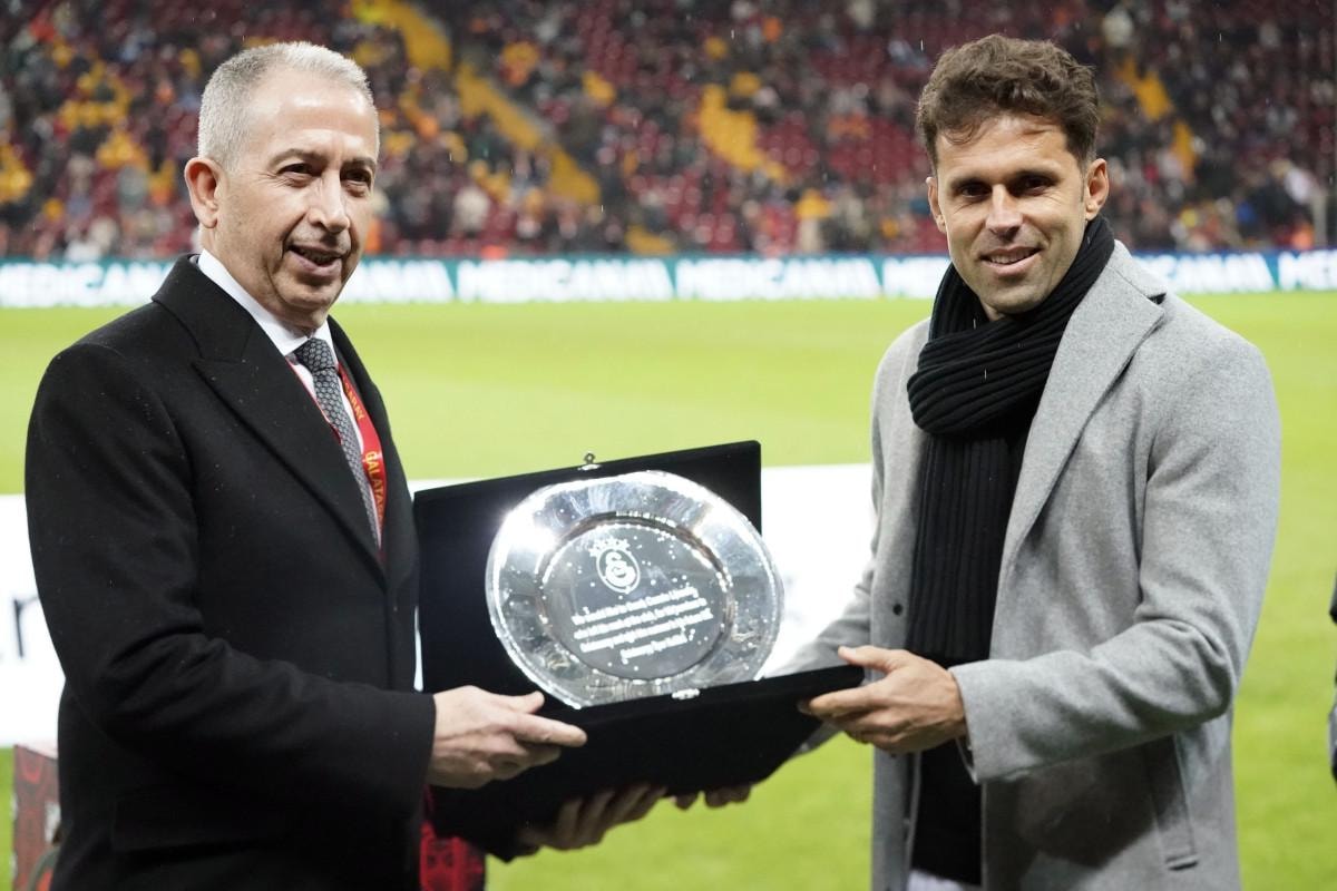 Plaketi ve formayı Galatasaray İkinci Başkanı Metin Öztürk takdim etti.