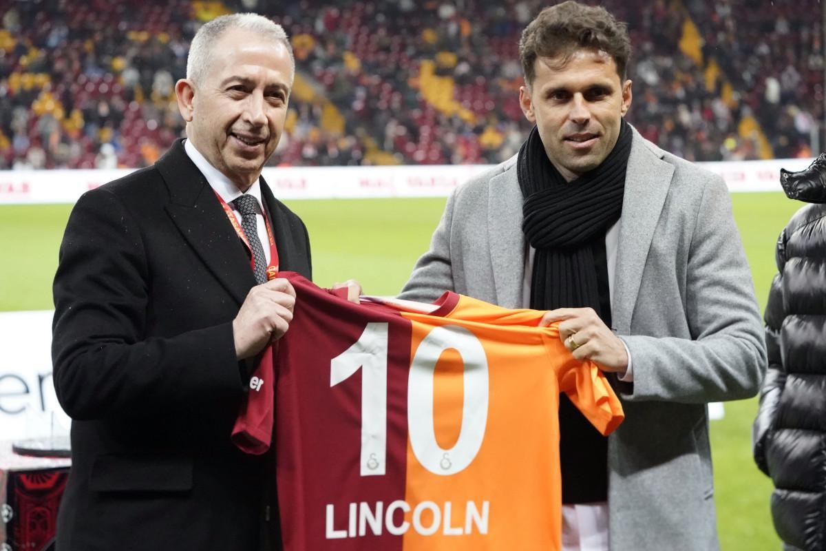 Karşılaşma öncesinde ise saha kenarında Lincoln’e plaket ve üzerinde ismi yazılı 10 numaralı Galatasaray forması verildi.