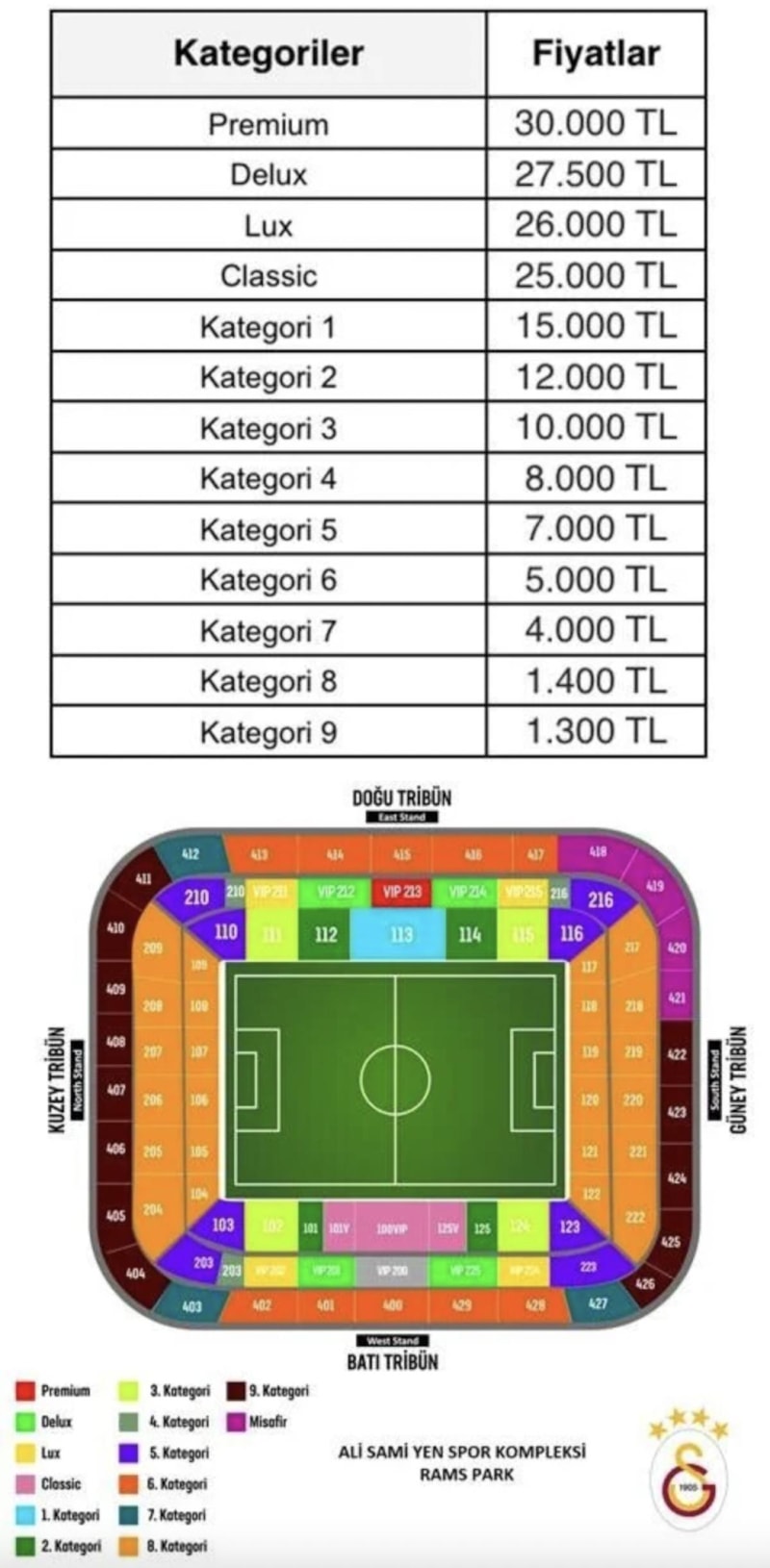 Sarı-kırmızılı takım, bilet fiyatlarının 1300 TL ile 30 bin TL arasında satışa sunulduğu açıklandı.