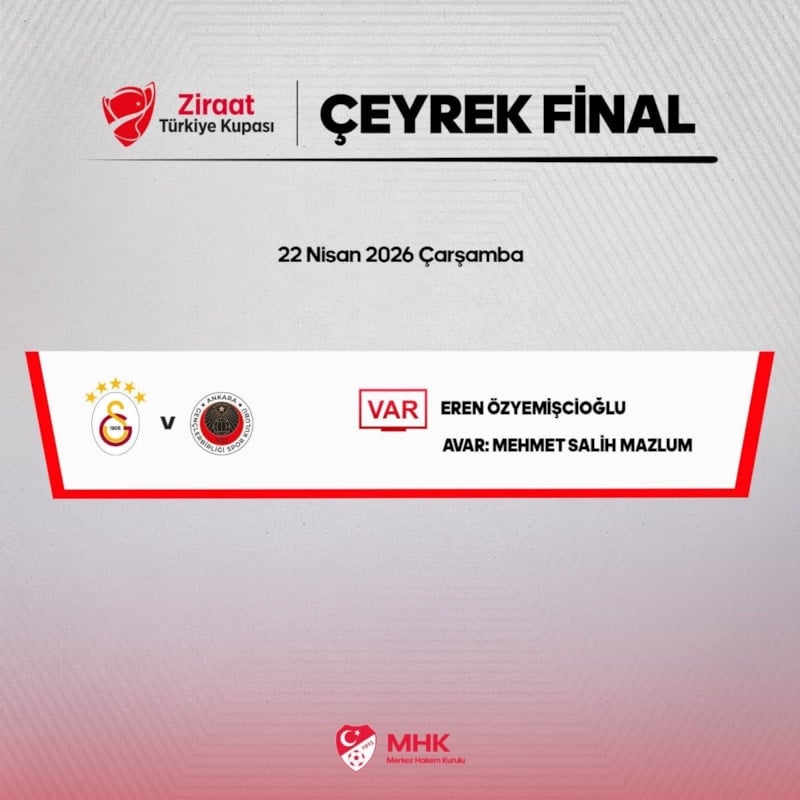 Türkiye Kupası çeyrek final maçında Galatasaray-Gençlerbirliği müsabakasının VAR'ı Eren Özyemişçioğlu oldu.