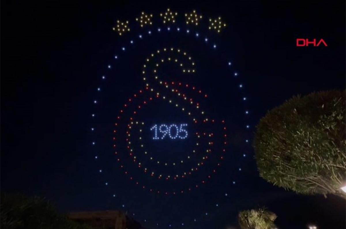 Dronelarla Galatasaray’ın 5’inci yıldızı takmasına dikkat çekilirken, daha sonra gökyüzünde Galatasaray amblemi oluşturuldu.