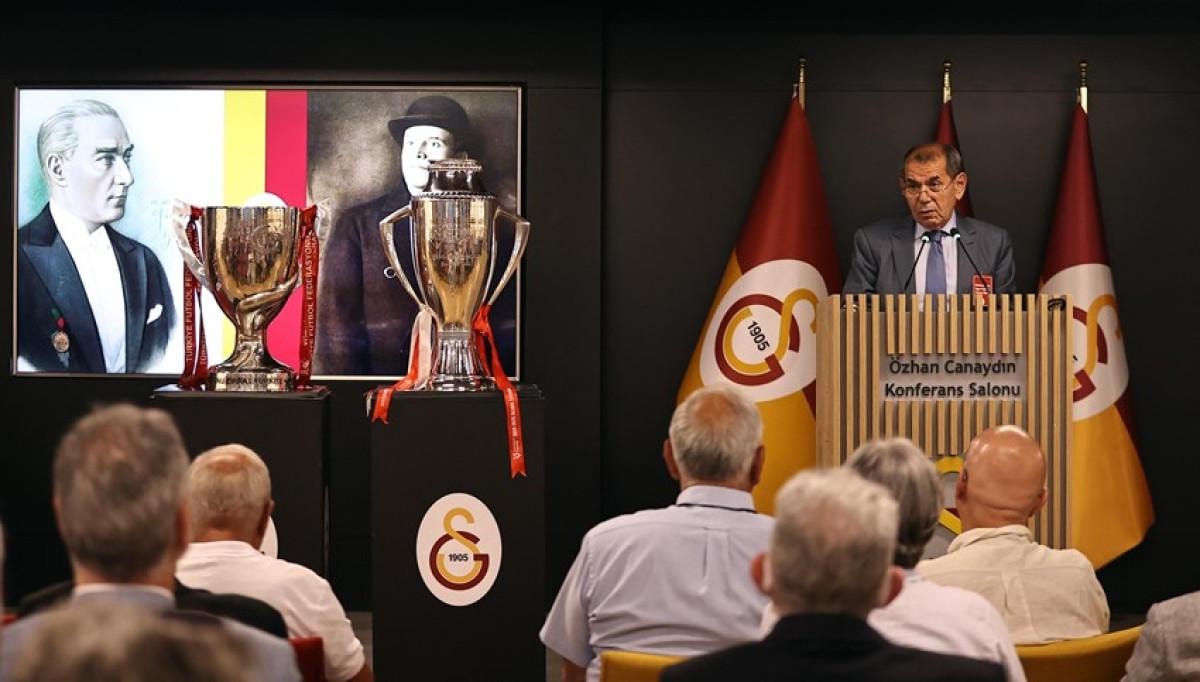 Galatasaray Başkanı Dursun Özbek, toplantıda divan üyelerinin konuşmalarının ardından tekrar kürsüye çıktı.