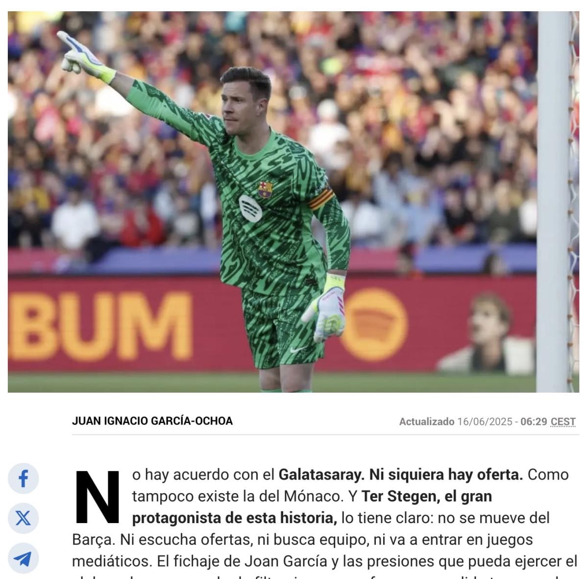 İspanyol basınından Marca’da yer alan habere göre Galatasaray’ın Ter Stegen ile bir anlaşma yapmadığı ve hatta bir teklif de iletilmediği belirtildi.