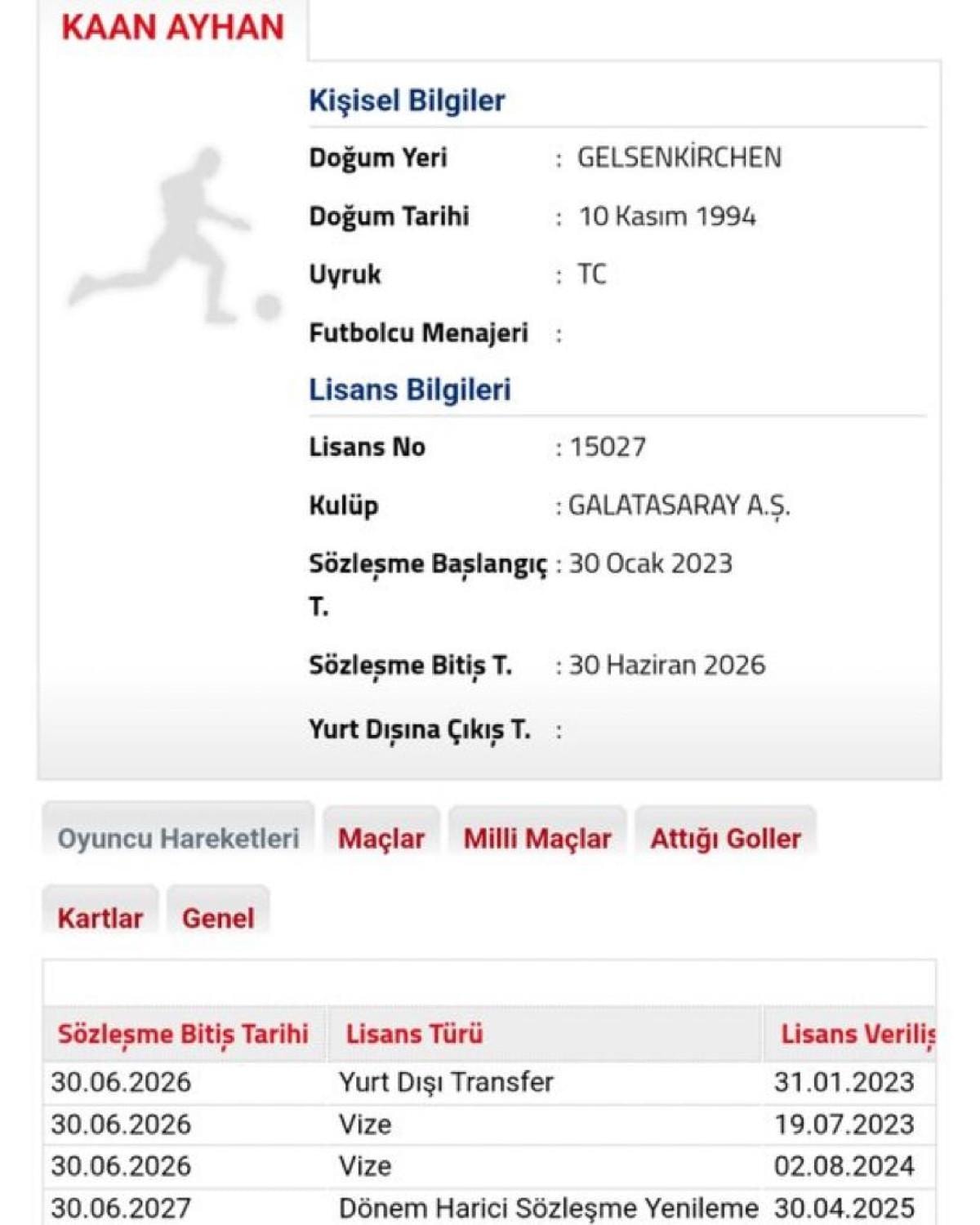 Galatasaray'da 2 şampiyonluk kazanan Kaan, bu sezon 38 resmi maçta 3 asist yaptı.