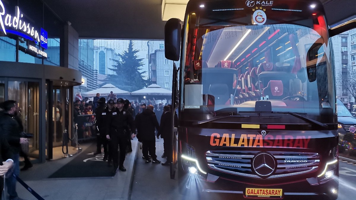 Öte yandan çok sayıda taraftar, Galatasaray'ı otel önünde karşıladı. Tezahüratlarıyla takıma moral veren taraftarlar, futbolcularla fotoğraf çekindi.