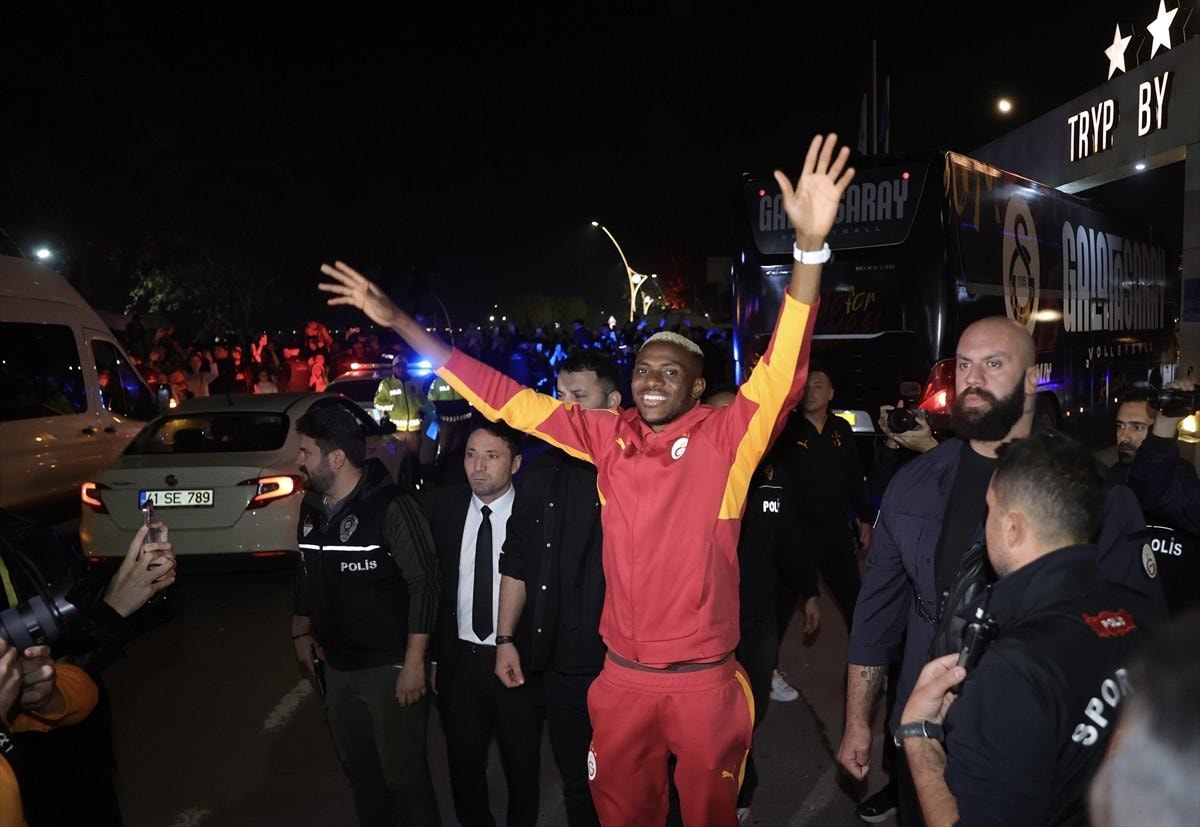 Takımın otele girişinin ardından Osimhen, otel önünde bekleyen taraftarları selamlayarak tezahürat yaptırdı.
