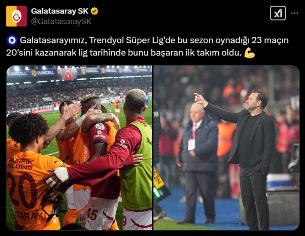 Bu sezonki 23 lig maçının 20'sini kazanan Galatasaray, lig tarihinde bir sezonun ilk 23 karşılaşmasından 20 galibiyet çıkaran ilk takım oldu.