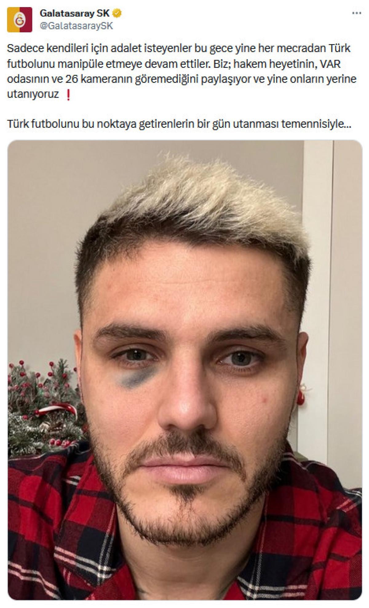 Maçın ardından Galatasaray'ın sosyal medya hesabından Icardi'nin gözünün morardığı bir fotoğraf paylaşıldı.
