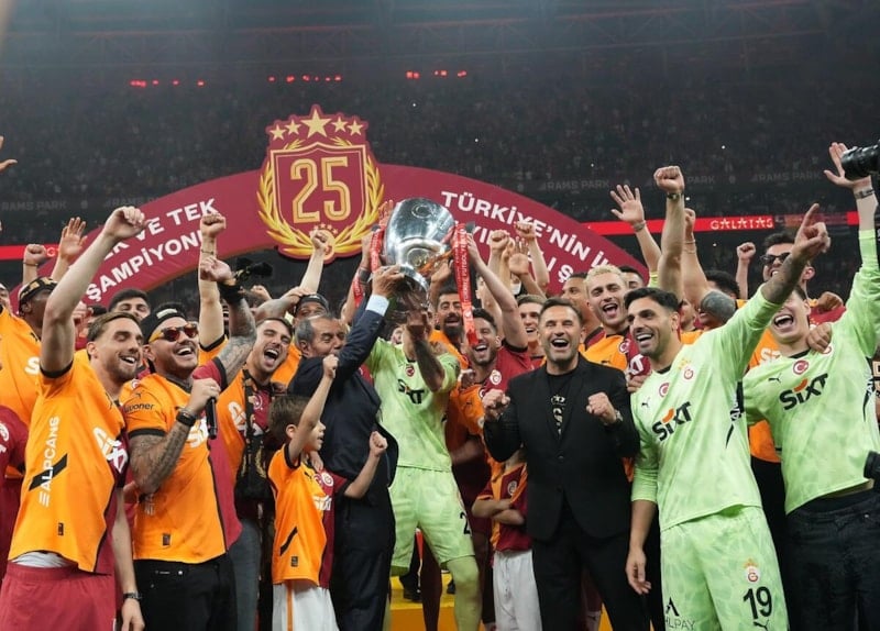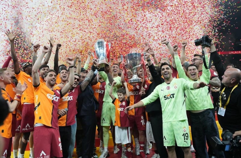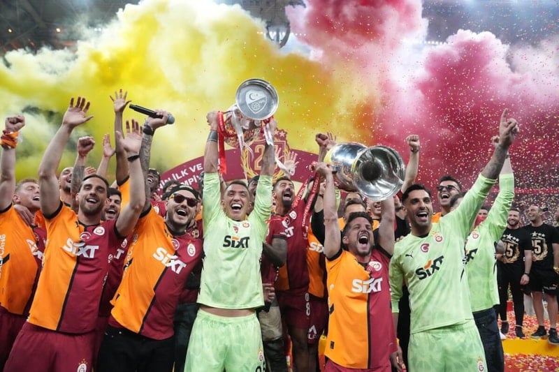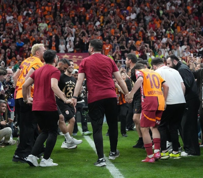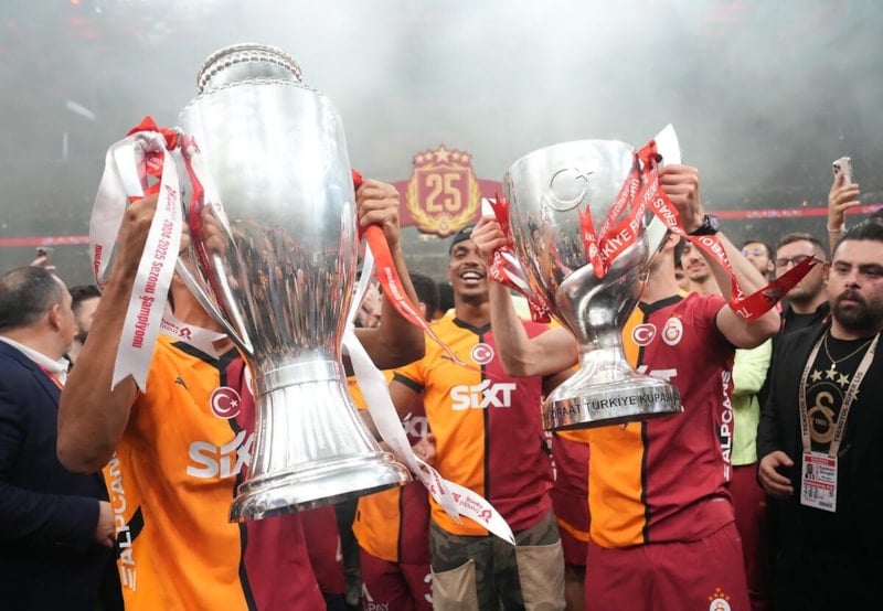 Galatasaray, Süper Lig şampiyonluğu ve Türkiye Kupası zaferlerini, Başakşehir maçının ardından bir kez daha kutladı.