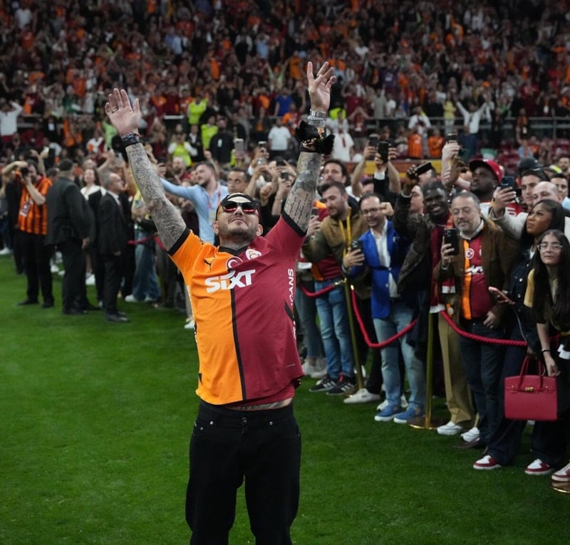 Galatasaray taraftarlarının sevgilisi Mauro Icardi de ‘Aşkın olayım’ şarkısıyla podyuma çıktı. Icardi sahaya çıkarken Galatasaray taraftarlarının büyük coşku yaşadığı dikkatlerden kaçmadı.