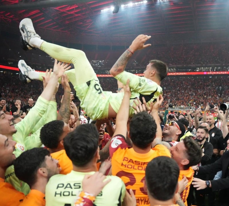 Muslera takım arkadaşları tarafından omuzlara alınarak havaya atıldı.