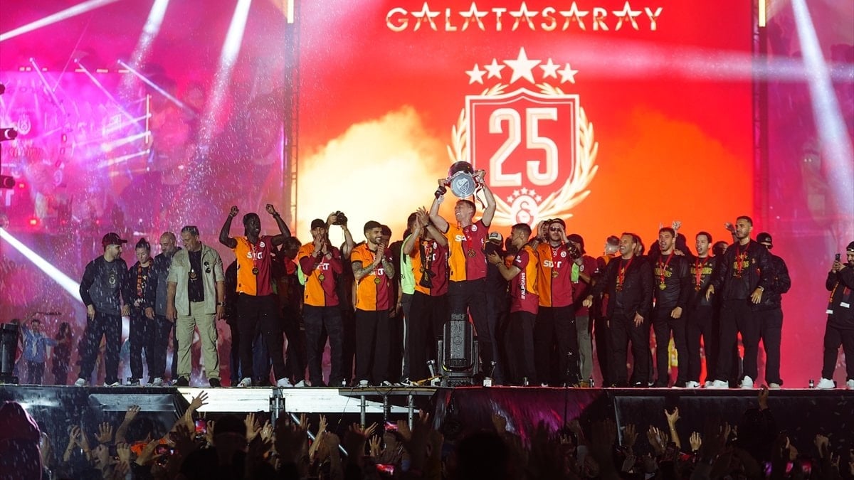 Üstü açık bir otobüsle etkinlik alanına gelen sarı-kırmızılı futbolcular, burada yüz binlerce taraftar tarafından coşkuyla karşılandı.