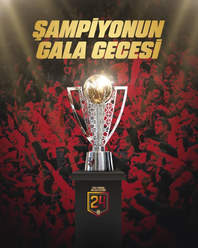 2023-2024 Süper Lig Şampiyonu Galatasaray, 24. şampiyonluğunu Ali Sami Yen Spor Kompleksi Rams Park’ta düzenlenecek Şampiyonun Gala Gecesi'nde görkemli bir şekilde kutlayacak. 27 Mayıs Pazartesi günü saat 19.05’te başlayacak organizasyonla Ali Sami Yen Spor Kompleksi Rams Park’ta YER SARI, GÖK KIRMIZI olacak! Sürpriz şarkıcılar, DJ Suat Ateşdağlı performansı, ışık, konfeti ve payro show ile drone gösterisi şampiyonluk kutlamasına renk katacak.