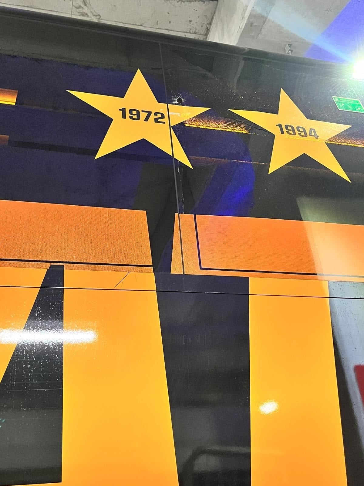 Galatasaray’ın 5’inci yıldız monte edilen otobüsünün bir camı atılan taş sonrası kırıldı.
