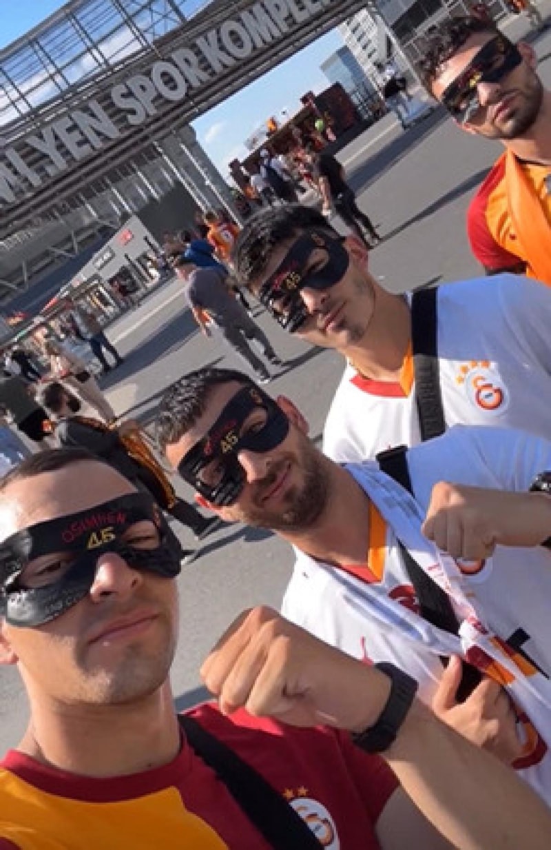 Galatasaraylılar, kritik 90 dakika öncesinde 100 milyon euro piyasa değerine sahip olan yeni golcüleri Osimhen ile özdeşleşen maskelerle poz verdi.