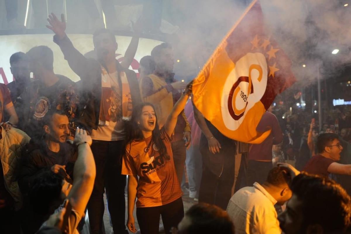 Son düdüğün çalınmasıyla birlikte binlerce Galatasaray taraftarı ellerinde meşale ve bayraklarla sokaklara çıktı. Kutlamalar esnasında bir Beşiktaş formalı taraftar ise eline Galatasaray bayrağı alarak coşkuya ortak oldu.
