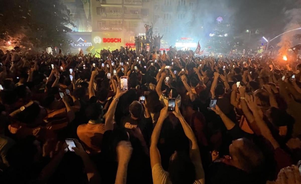Galatasaray'ın şampiyonluğunu ilan etmesinin ardından binlerce Galatasaray taraftarı cumhuriyet meydanında toplandı. Ellerinde bayrak ve meşalelerle marşlar söyleyerek şampiyonluğu kutlayan sarı kırmızılı taraftarlar, davul zurna eşliğinde halaylar çekti. Kimi taraftarlar ellerinde bayraklarla davul zurna eşliğinde halaylar çekerken kimileri ise araçlarıyla konvoy yaptı.