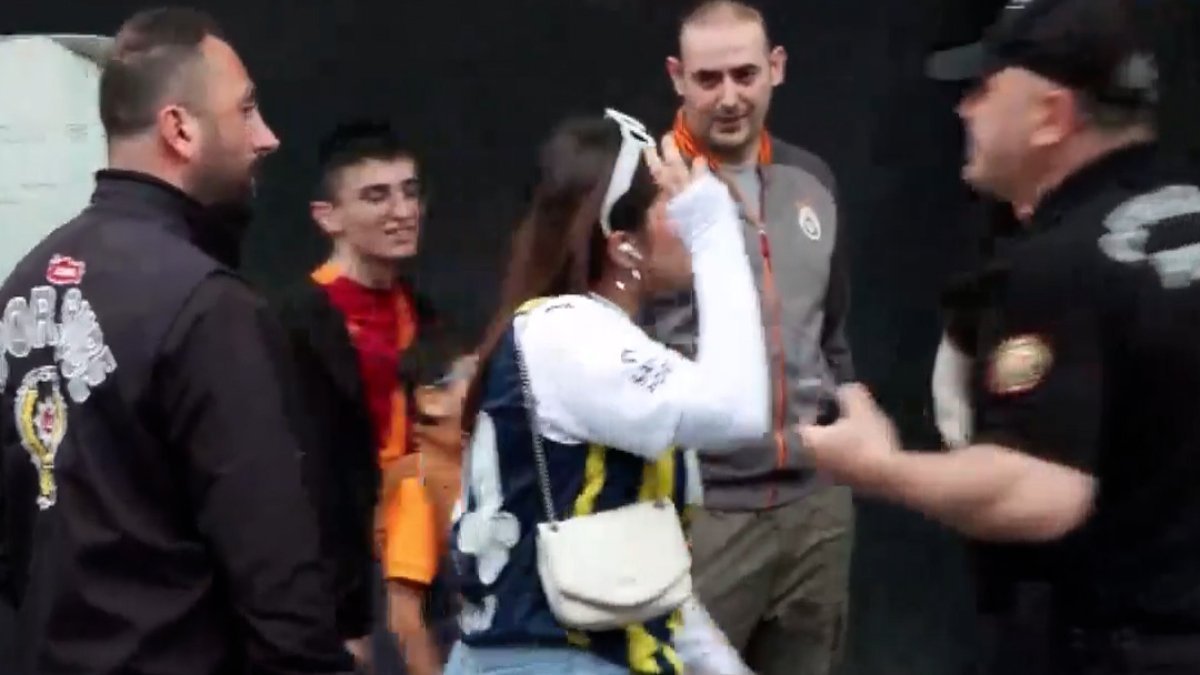 Takımın tesislerden çıkışını bekleyen Sarı-kırmızılı taraftarlar, o sırada yanlarından geçen Fenerbahçe formalı bir kadına tepki gösterdi.