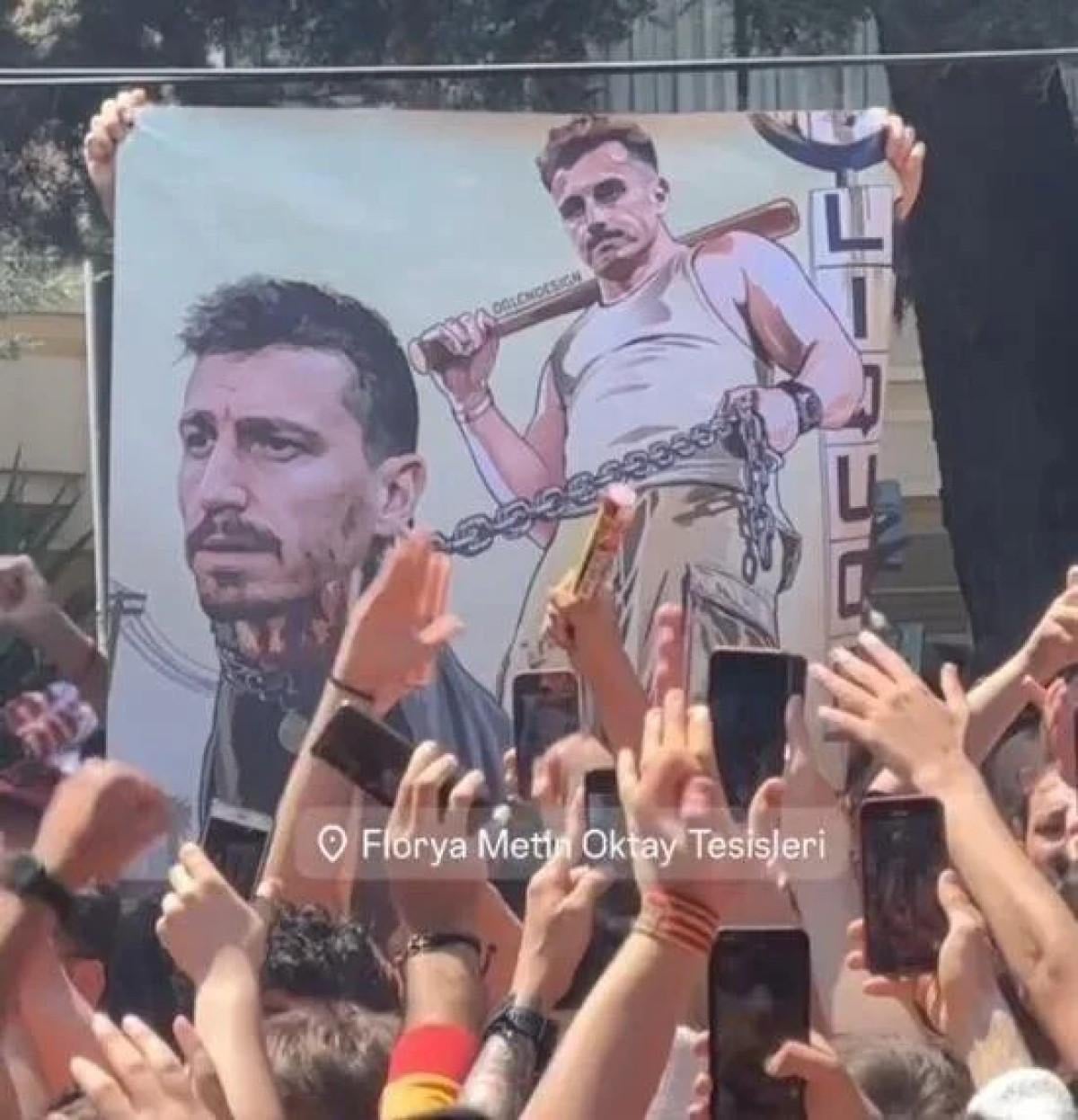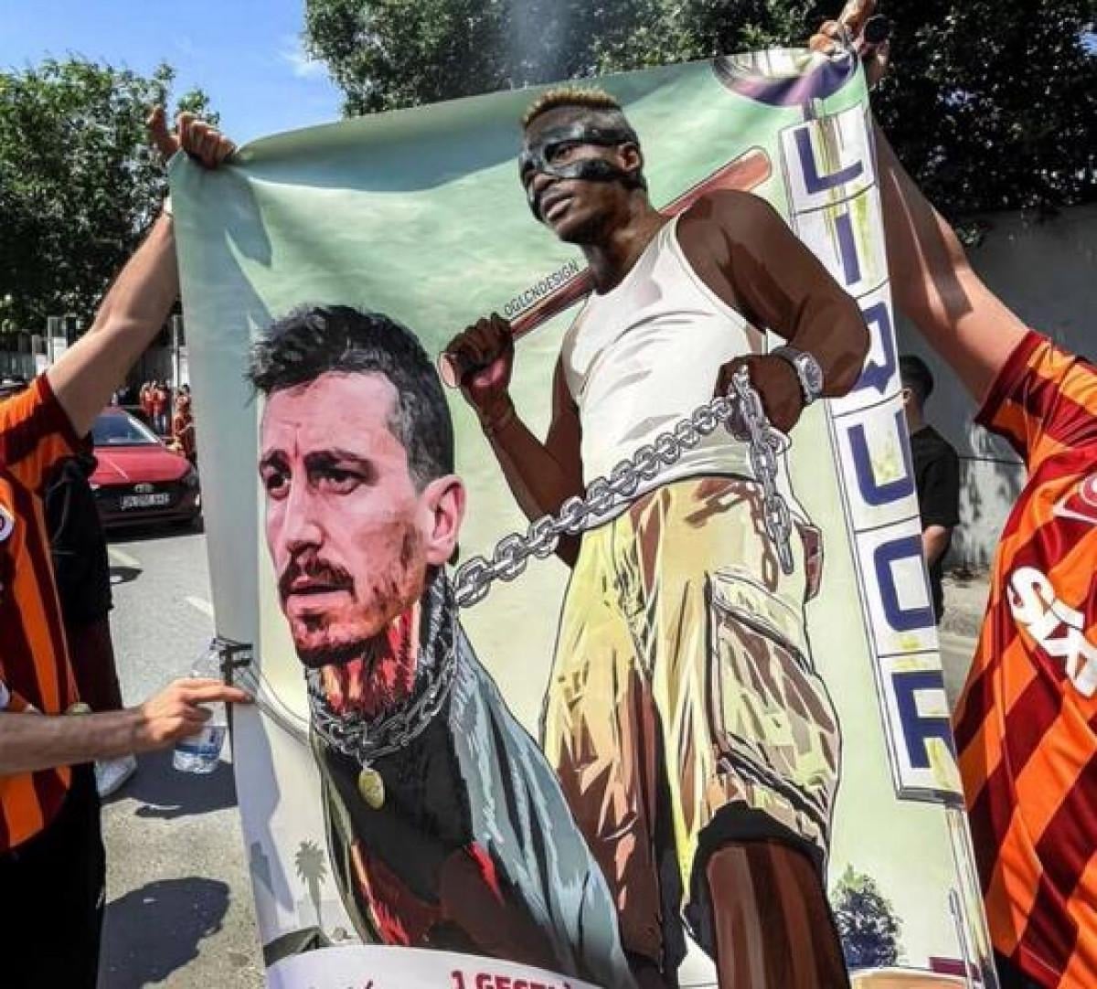 Sarı-kırmızılı taraftarların hazırladığı ve Victor Osimhen ile Mert Hakan Yandaş'ın yer aldığı pankart şu şekilde: