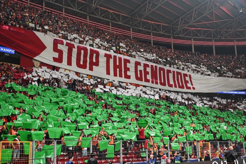 Sarı-kırmızılı takımın ulusal ve uluslararası maçlarında Filistin'de yaşanan soykırımı gündeme getiren Galatasaray taraftarı, UEFA Şampiyonlar Ligi'ndeki Bodo/Glimt müsabakasını da boş geçmedi.