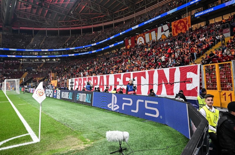 Kuzey tribününde ayrıca İngilizce "Özgür Filistin" yazılı pankart asıldı.