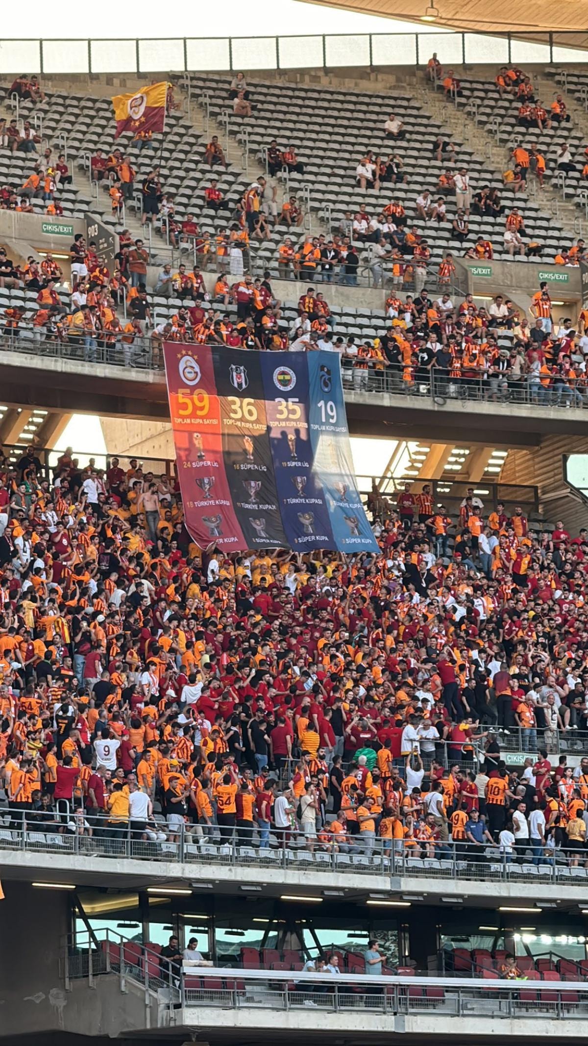 Sarı kırmızılı takımın taraftarları, dev maçta toplam kupa sayılarının yer aldığı bir pankart açtı.
