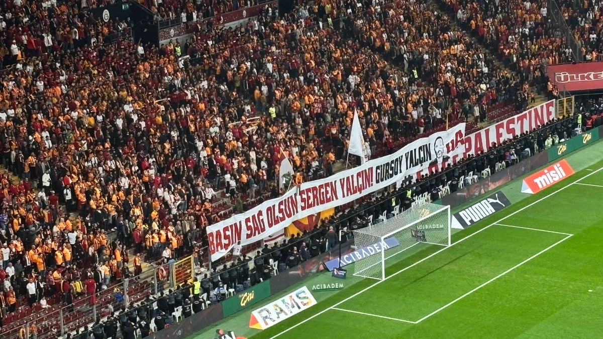 - "Başın sağ olsun Sergen Yalçın" pankartı açan sarı-kırmızılılar, maçı Ali Sami Yen Spor Kompleksi'nde izledi.