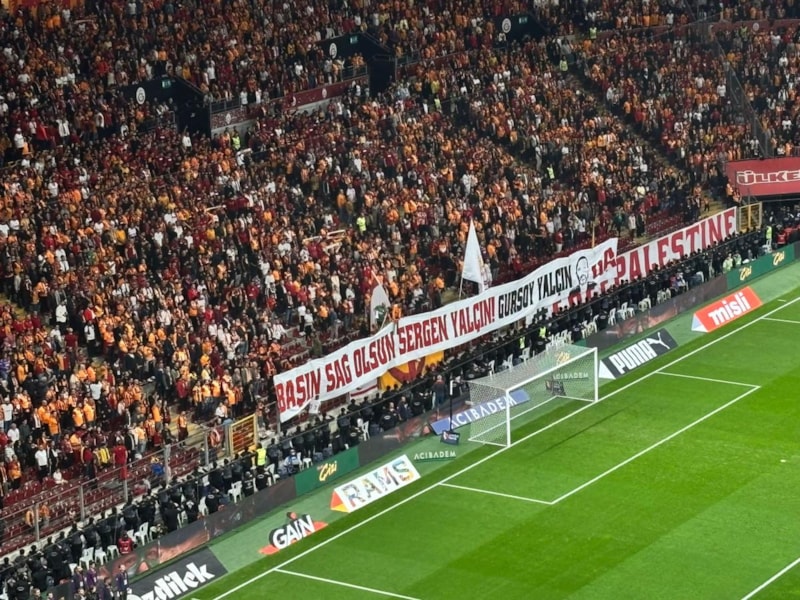 Galatasaraylı taraftarlar ayrıca Sergen Yalçın'ın 5 Şubat 2025 tarihinde vefat eden kardeşi Gürsoy Yalçın için, "Başın sağ olsun Sergen Yalçın" pankartı açtı.