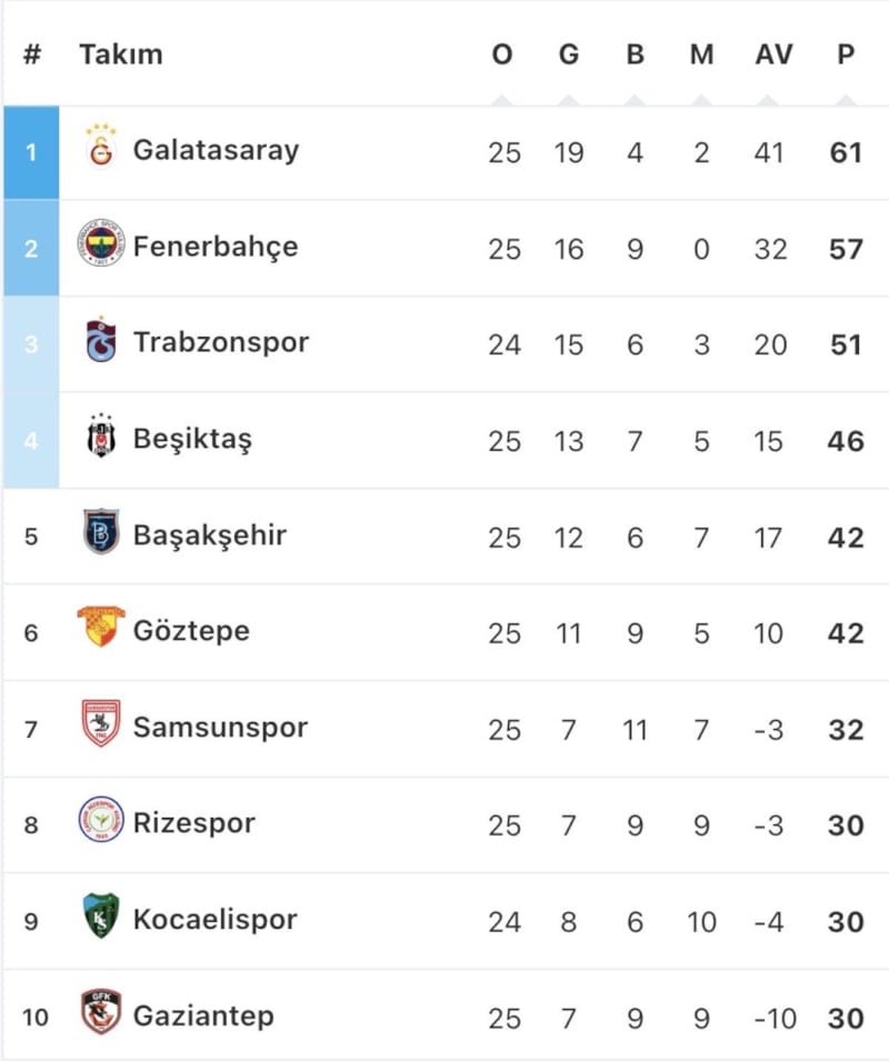 Sonuçların ardından Fenerbahçe'nin ligde 57 puanı bulunuyor. Lider Galatasaray'ın ise 61 puanı var.