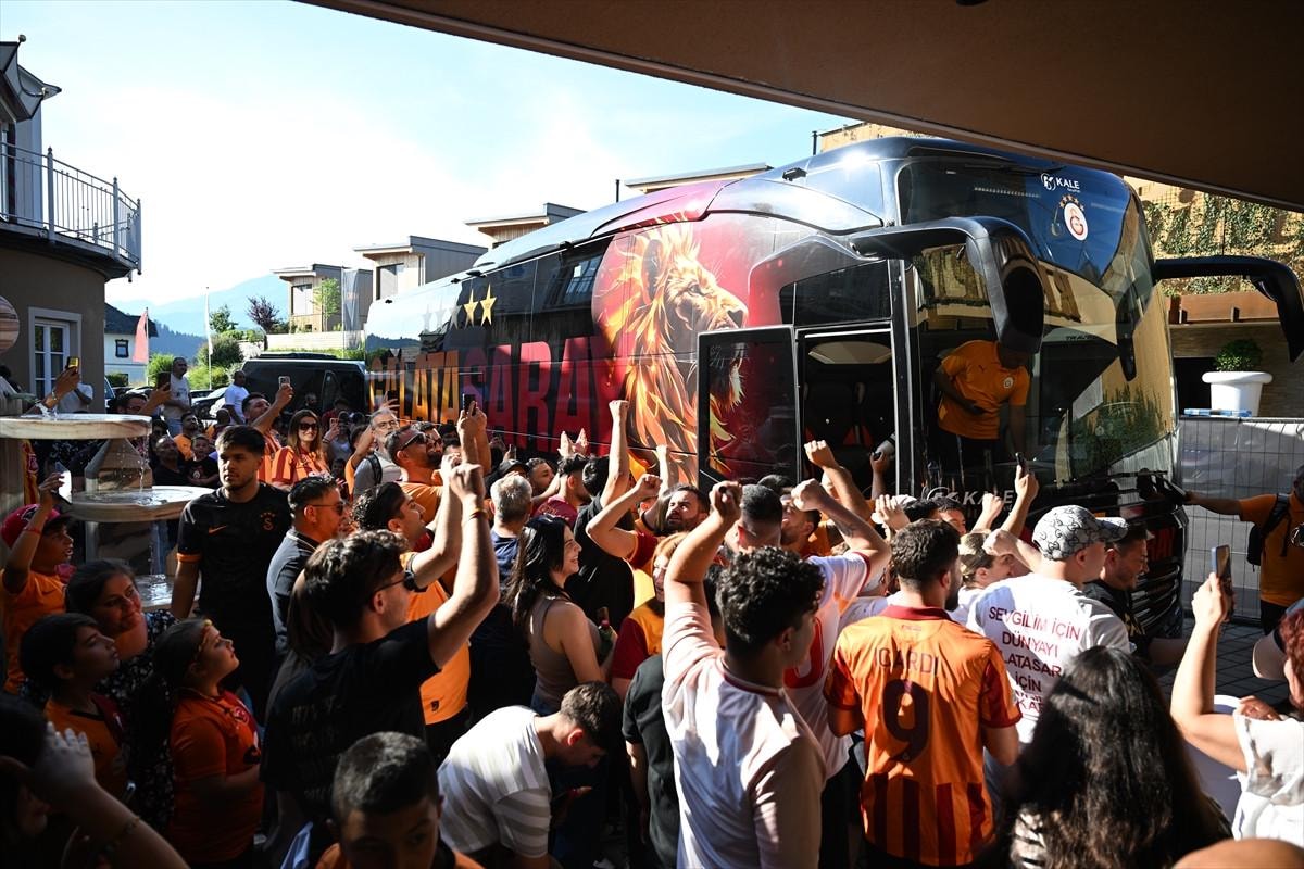 Havalimanından karayoluyla Windischgarsten bölgesindeki kamp yapacağı otele geçen Galatasaray'ı bir grup taraftar karşıladı.