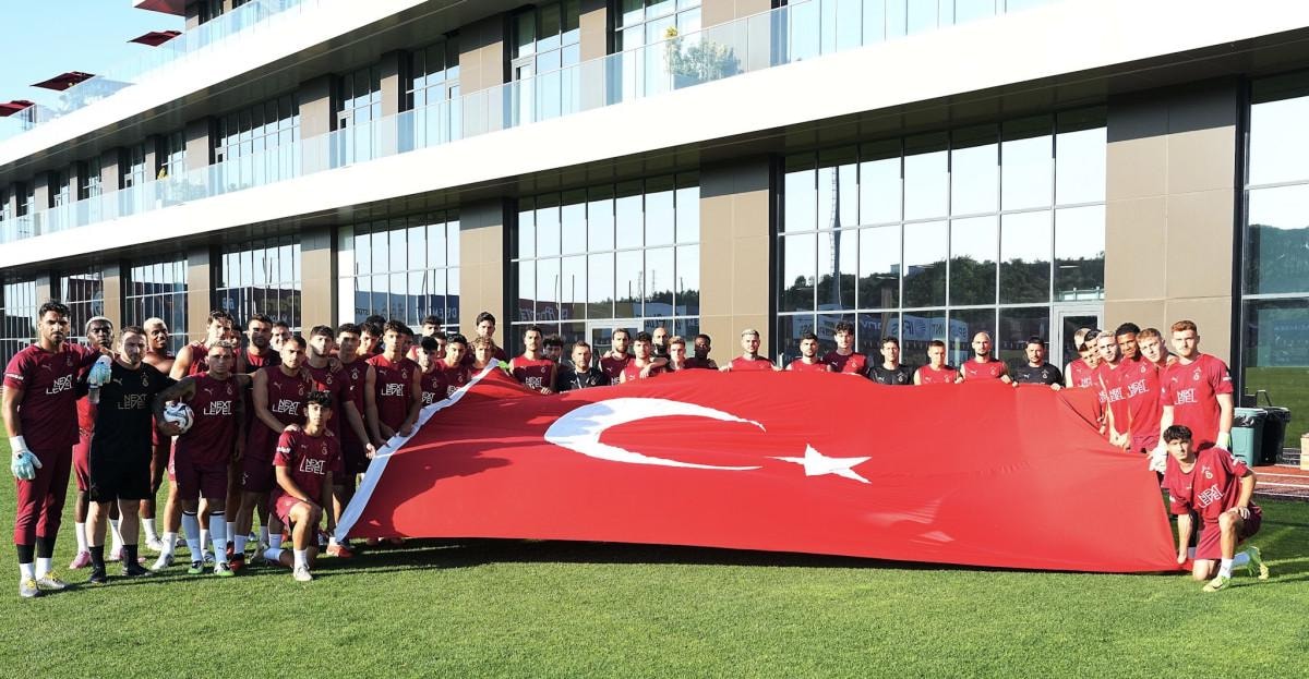 Antrenman öncesinde de sarı-kırmızılı teknik ekip ve futbolcular, 15 Temmuz Demokrasi ve Milli Birlik Günü dolayısıyla Türk bayrağıyla poz verdi.