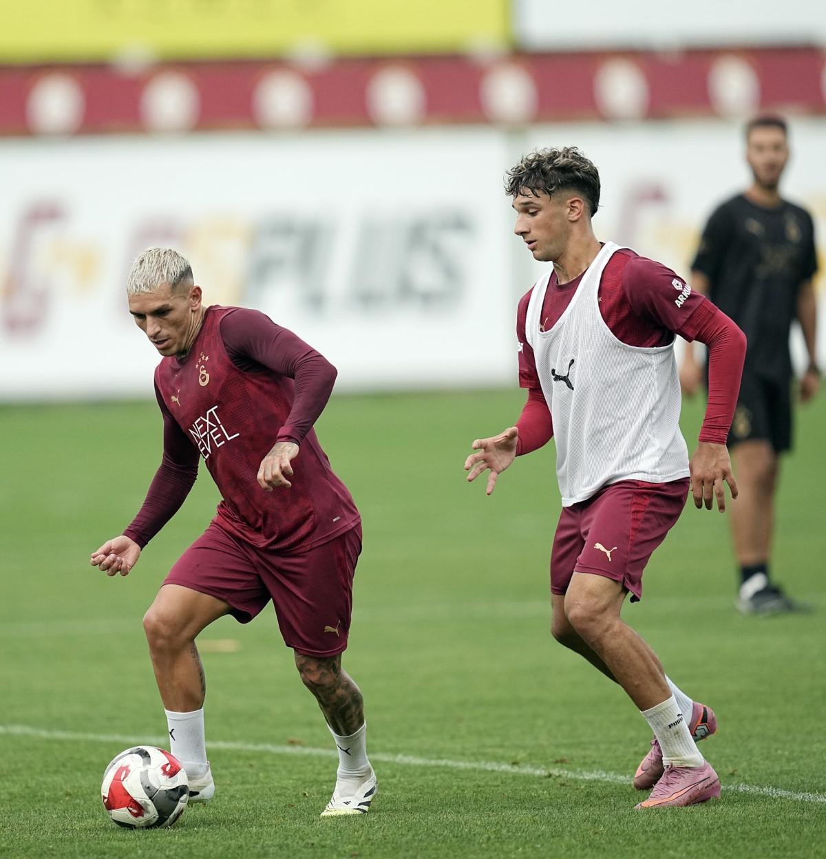 Teknik direktör Okan Buruk yönetimindeki idmanın, 2'ye 1 ve 3'e 2 hücum çalışmalarının ardından çift kale maçla tamamlandığı aktarıldı.