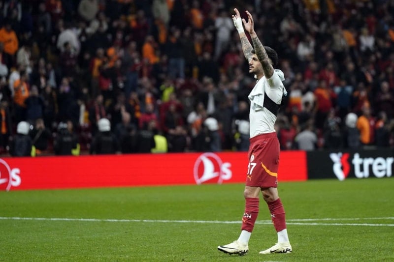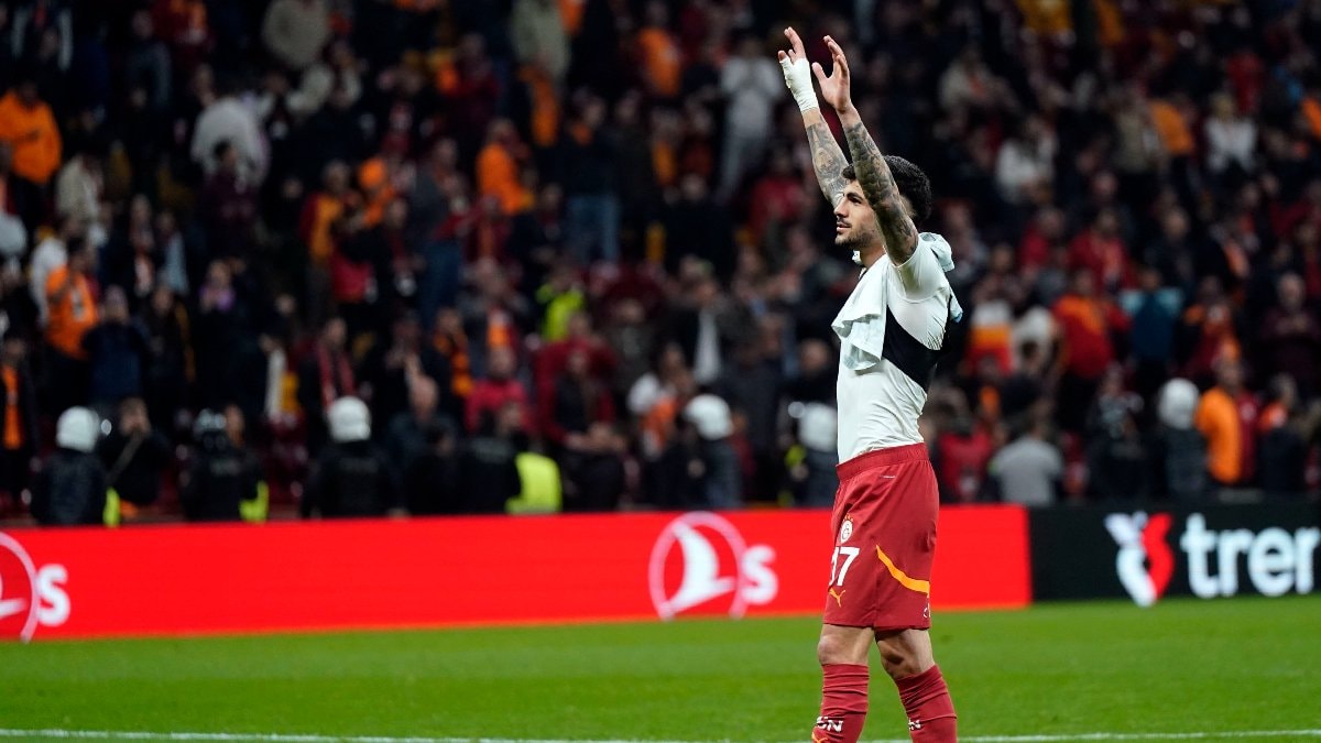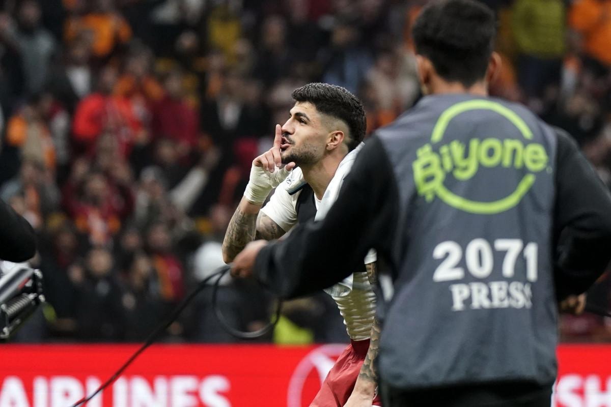 Galatasaraylı futbolcu Eren Elmalı, kale arkasındaki taraftarların isteğini kırmadı ve 3'lü çektirdi.