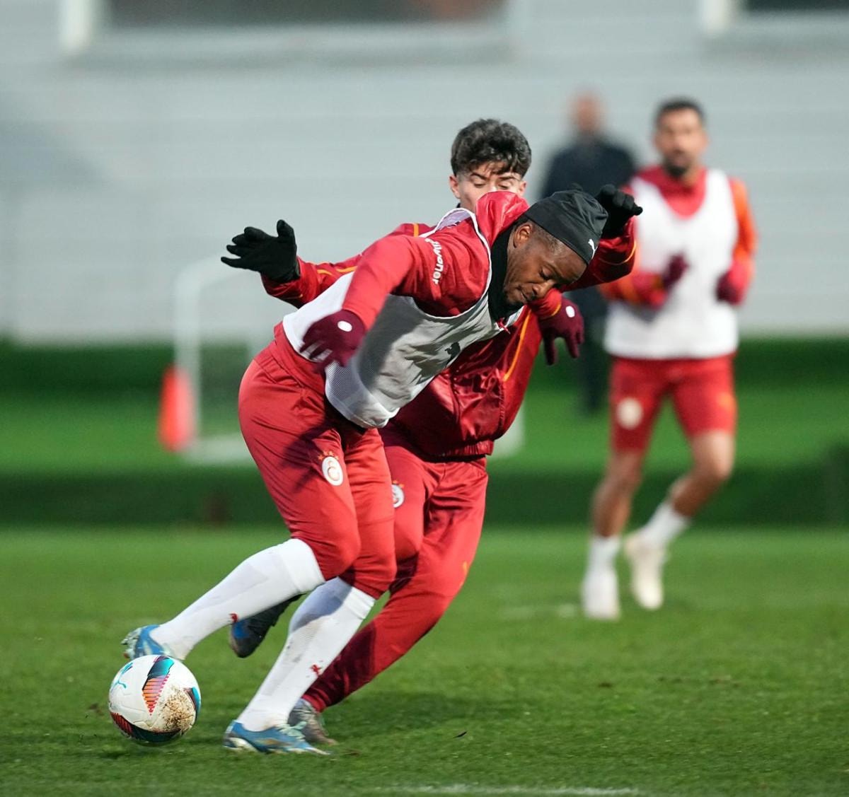 Dinamik ısınmayla başlayan idman, dört grup halinde 5’e 1 pas çalışmasıyla devam etti. Teknik direktör Okan Buruk yönetimindeki antrenman, topa sahip olma çalışmasının ardından üç takımlı turnuvayla sona erdi.